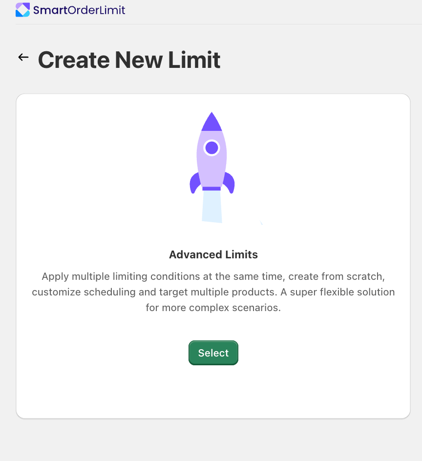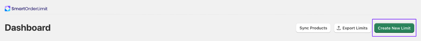 1. In the SmartOrderLimit dashboard, click Create New Limit